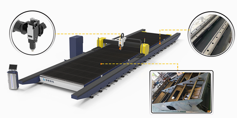 JLHP 大幅面金屬激光坡口切割機 解決大型板材加工困境及坡口切割難題 - 橋聯恒通激光科技推出JLHF 大幅面金屬激光切割機,解決大幅面材料加工困境,采用激光器與橫梁集成整體移動結構、雙邊齒輪齒條同步驅動、飛行光路,運動穩定可靠,是大幅面金屬激光切割的理想之選!
